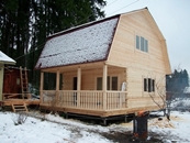 Таким образом, клееный брус представляет собой несколько крепко склеенных частей длиной – 2-8 метров и более с толщиной от 75 до 300 мм, что обосновывается необходимостью теплозащитности стен. Строительство домов из клееного бруса не предусматривает времени на его усадку, которая может составлять – 0,5-1%, поэтому непосредственно после сборки дома приступают к его отделке.
