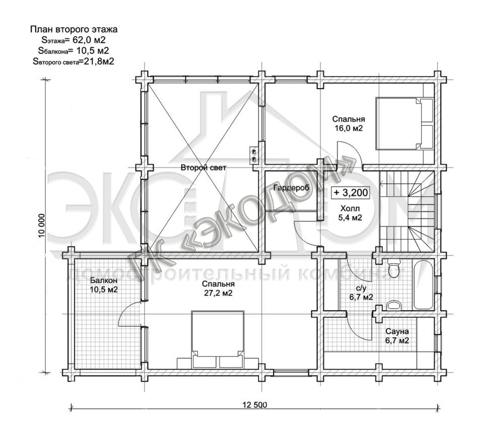 Дом дает много света, воздуха и тепла. Спортивный зал, просторная «двухсветная» гостиная и прекрасно оборудованная кухня — это первый этаж. Две спальни, гардероб, балкон, санузел и сауна находятся на втором этаже. И все это — для людей активных и добросердечных, желающих жить в полном единении с силами природы и друг с другом.