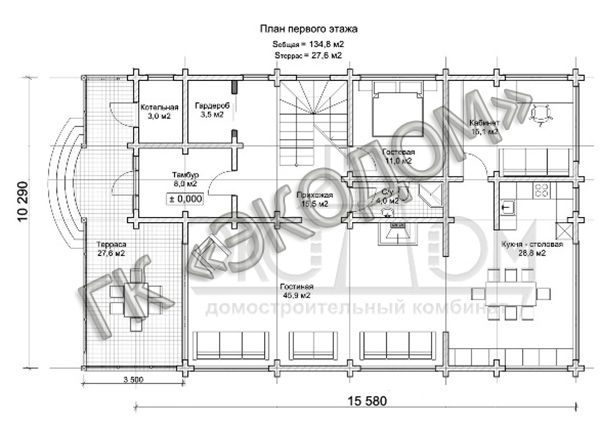 Большой дом — это всегда хорошо. Особенно простор загородного домовладения оценивают горожане, привыкшие к хроническому недостатку жизненного пространства и полному отсутствию пространства личного. А приехав в собственный загородный дом из клееного бруса общей площадью 268 кв.м., человек сразу же попадает в атмосферу неограниченной свободы, причем не только в доме, но и за его пределами.