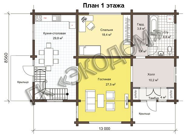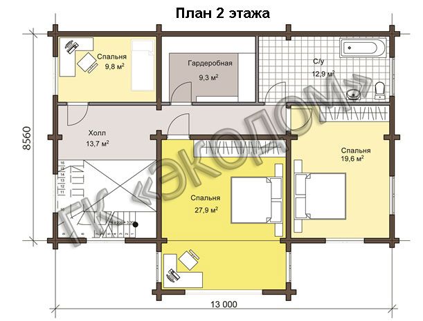 Площадь 2 этажа – 93.2 м2