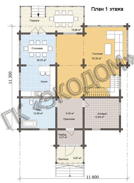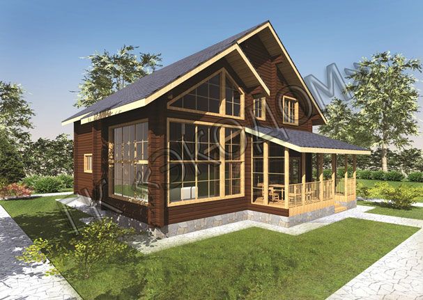 Перекрытия – клееная балка, мягкая черепица идеально подходит для мансардной кровли, витражные окна с фальш-переплетом, «второй свет», просторная терраса.