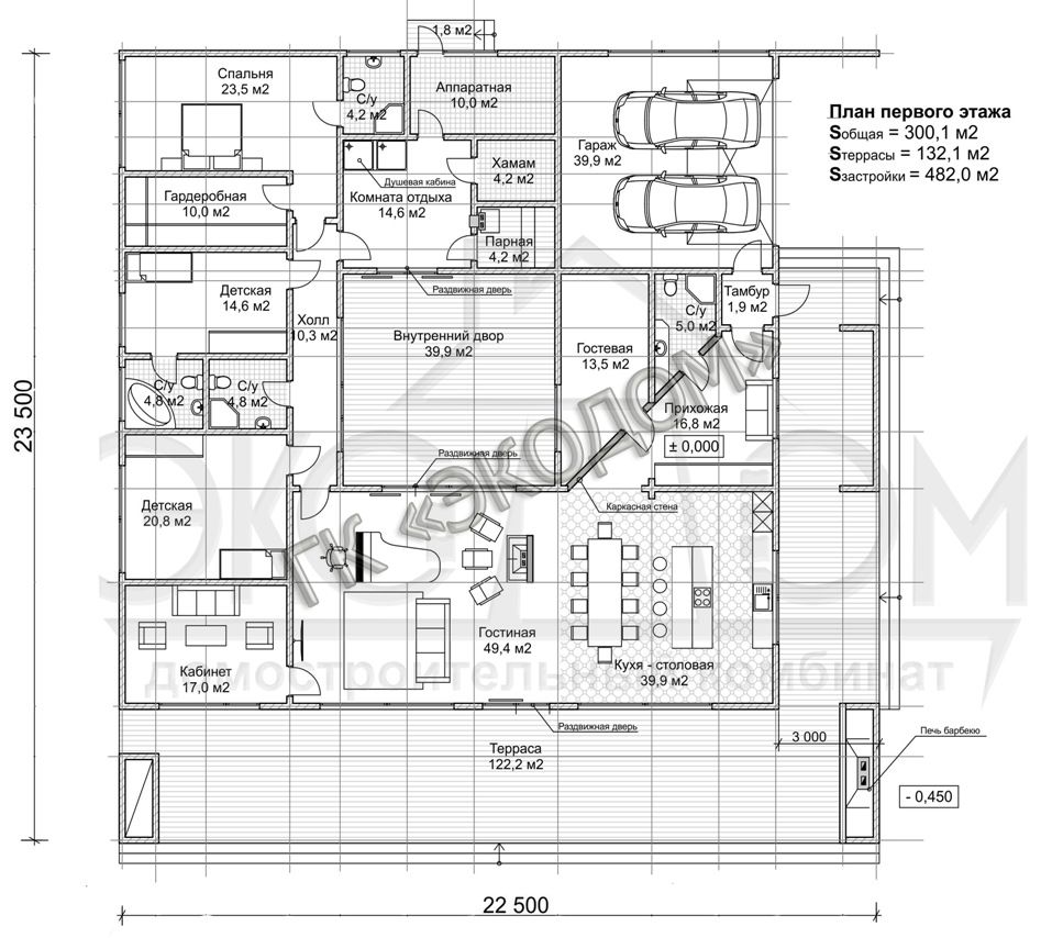 300 кв.м. — это вполне достойная для небольшой семьи площадь для комфортного проживания за городом. Особенно после ставшей привычной за долгие годы суеты мегаполиса и его отнюдь не самой благополучной экологии. Но простор в жилище — это еще не все. Горожане, решившие полностью изменить образ жизни на более здоровый и переселиться за город, заказывают строительство не просто благоустроенного особняка на купленном участке. Крайне желательно, чтобы дом имел удобную планировку, имел все необходимое для комфортного проживания.
