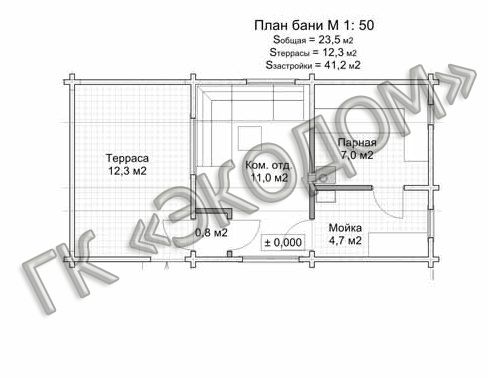 Даже на небольшом дачном участке такое строение, имеющее общую площадь застройки 41 кв.м., можно разместить без особого труда.