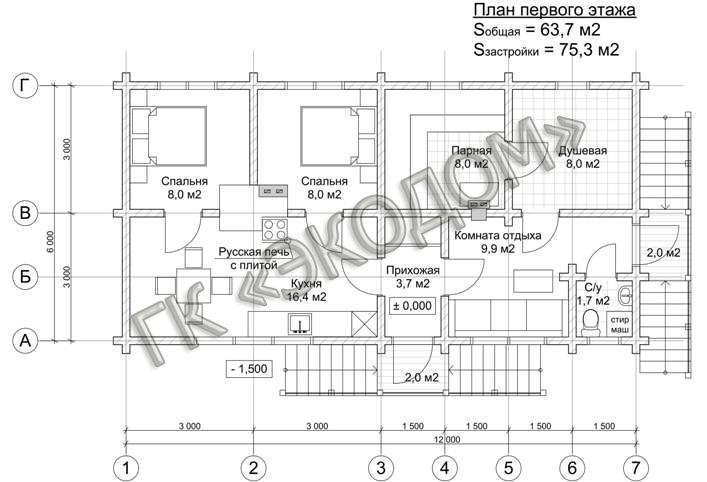 Баня площадью 50 м2 (код Б-0064-О-2)