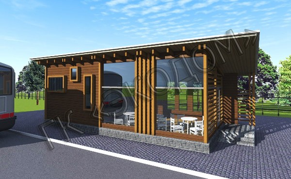 Не является исключением и торговый павильон площадью 47 кв.м. Только он выполняется не из SIP-панелей, а из клееного бруса, что значительно повышает устойчивость и надежность всей конструкции, а каркасная технология заметно сократит время и общую стоимость строительства и даст новые возможности дизайнерам по оформлению павильона.