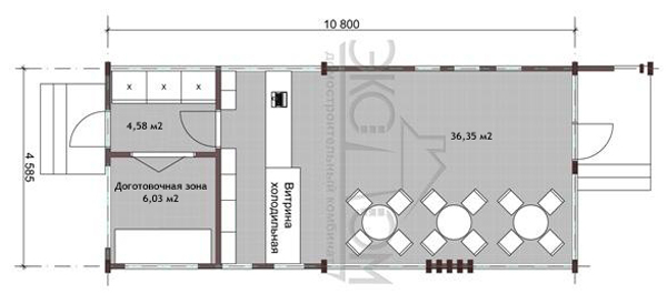 Ну, а внутри павильона — стандартная для заведений такого рода планировка. Гостевая часть со столиками для клиентов, светлая и просторная, и административная часть с доготовочной зоной, отделенная от зала холодильной витриной. И еще в таком павильоне всегда приятно посидеть за чашечкой кофе — материал, из которого он выполнен, создает наилучшую атмосферу и способствует сохранению в помещении свежести.